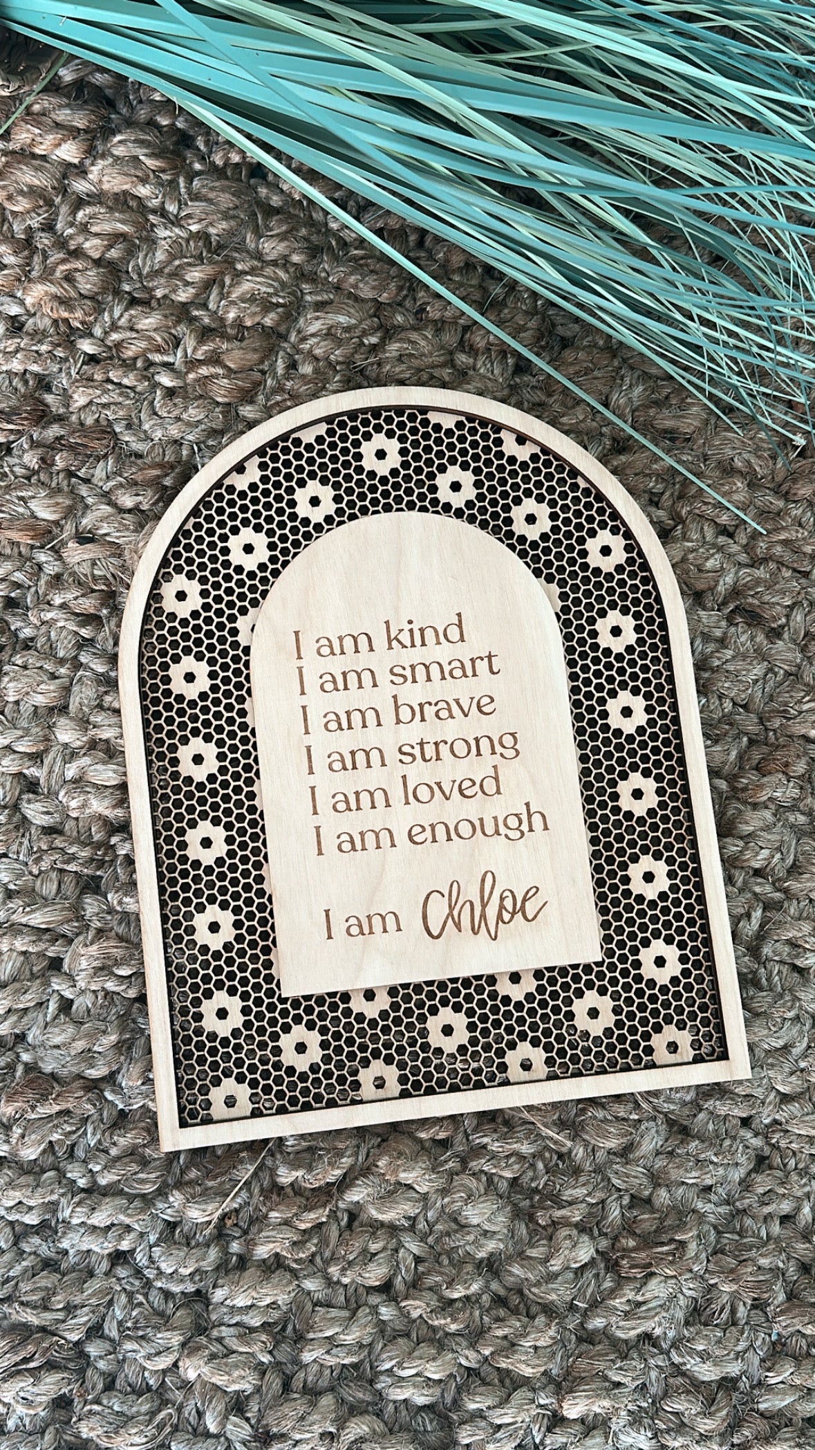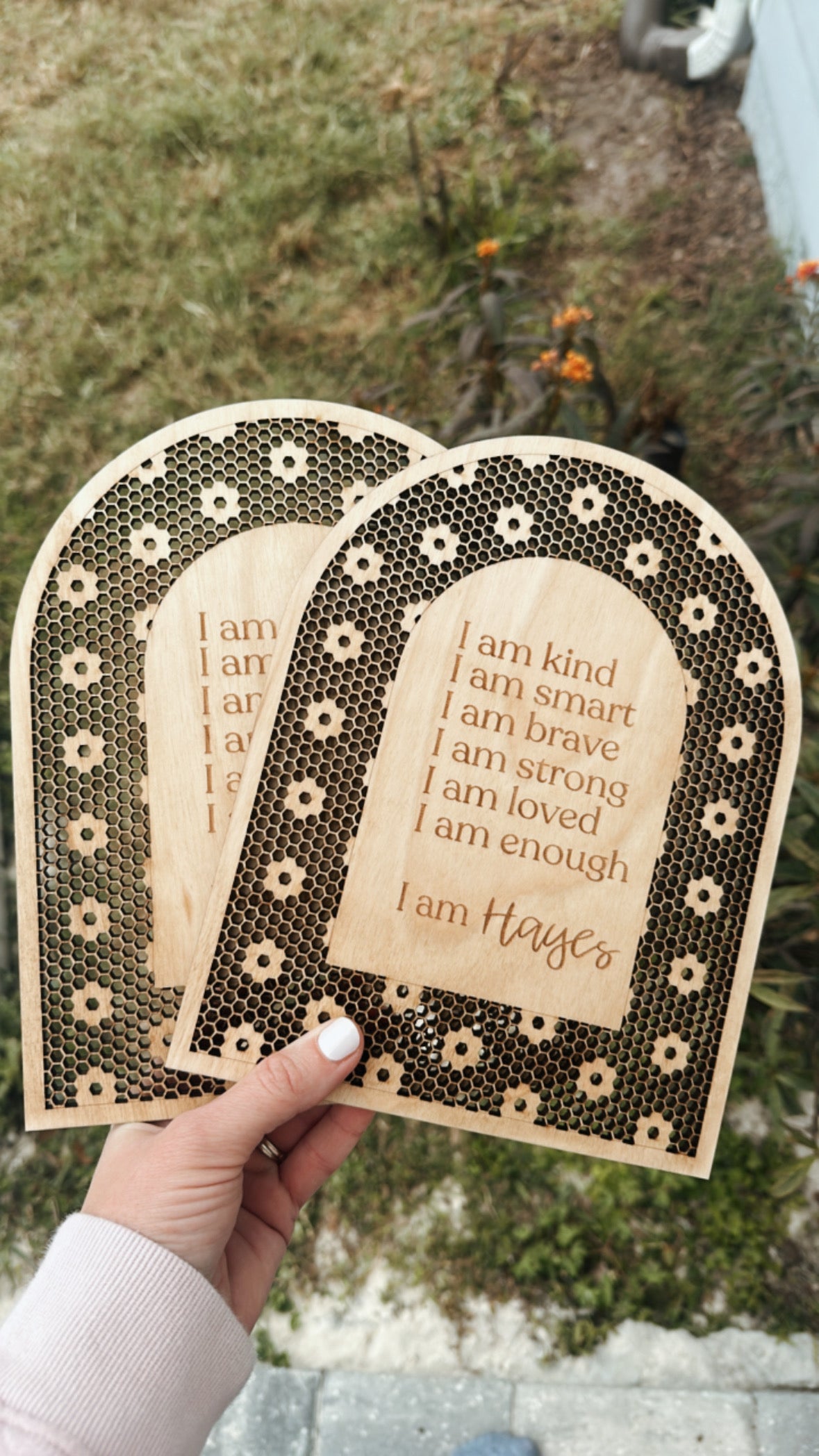 Rattan Floral Birch Wood Affirmation signs for you childs nursery or playroom. Each rattan sign is laser cut and engraved. Rattan signs are approximately 8"-12" depending on selection chosen.