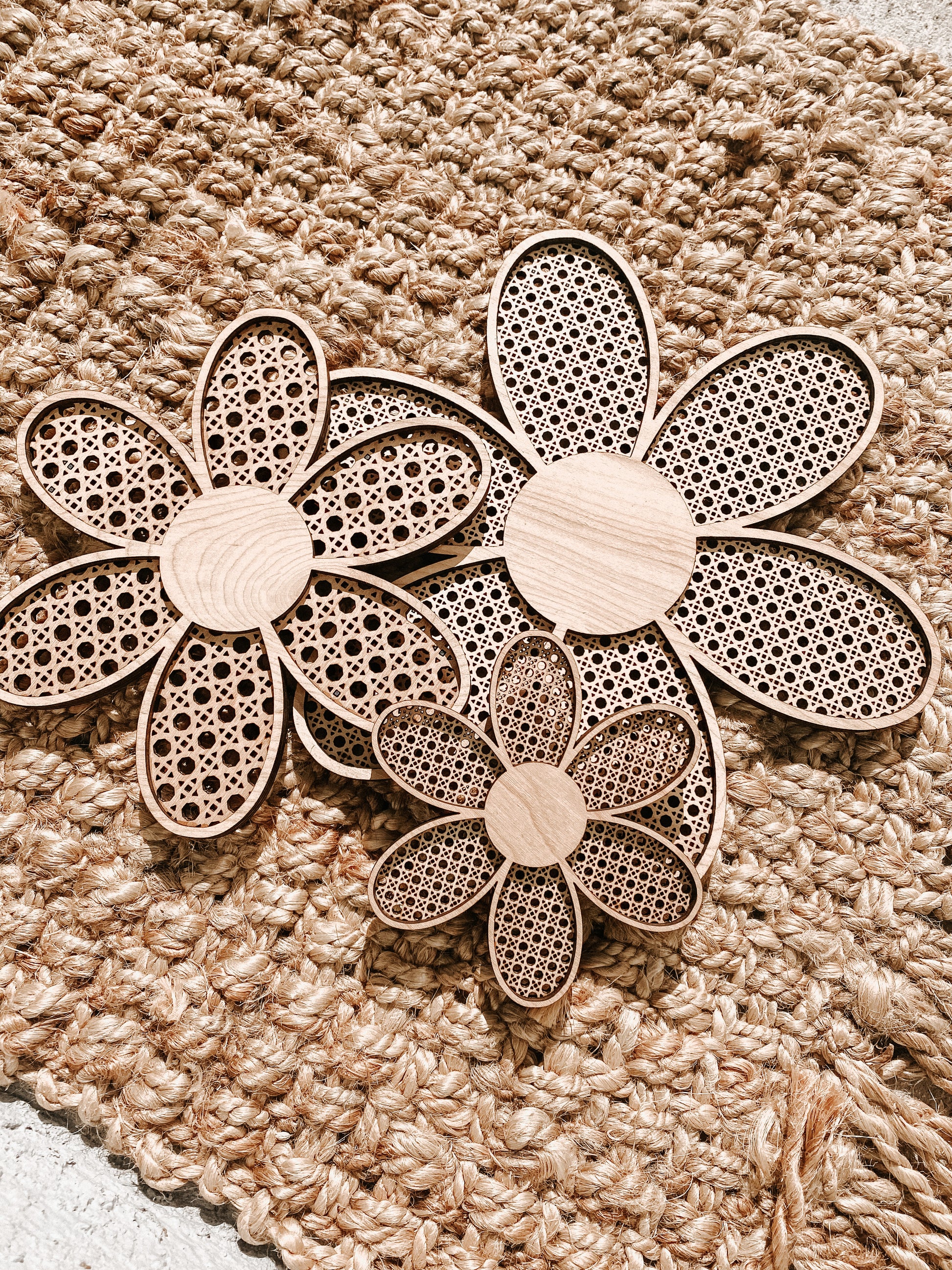 These beautiful rattan flowers are a perfect touch for a boho home, a little girls nursery, or even your big kids new room. Each daisy is laser cut.