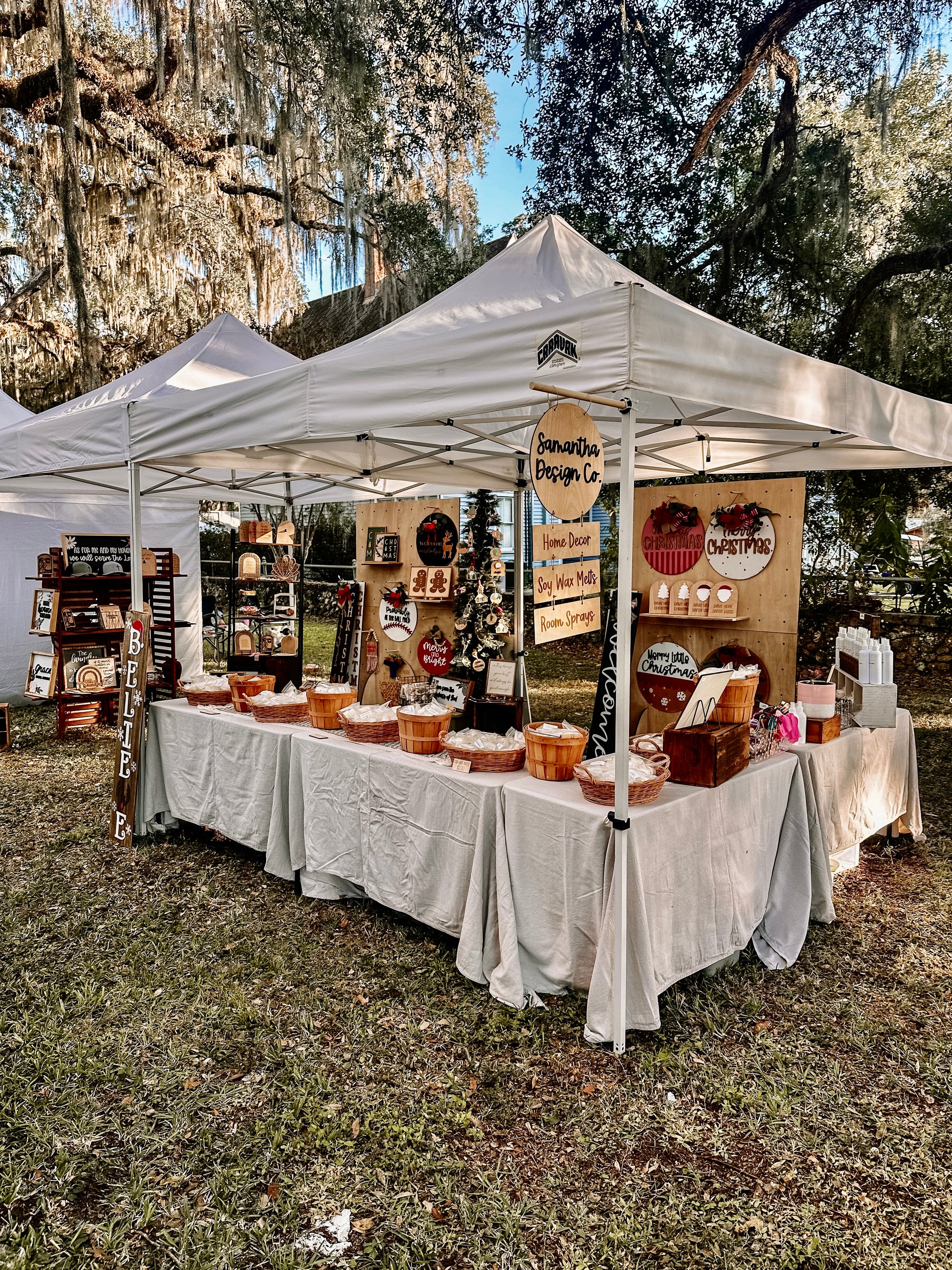 Vendor signage for craft fair. This file contains the circle piece as well as the three rectangle with O cut outs for adding rings to hang. File contains font names for download as well.